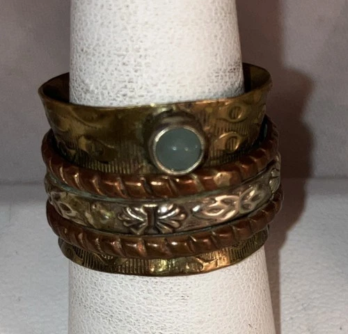 Handcrafted Mixed Metal Brass Copper Silver Spinner Ring MoonStone Size 8 spins