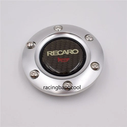 RECARO Carbon Fiber Racing Steering Wheel Horn Button Cover+Silver Aluminum Edge