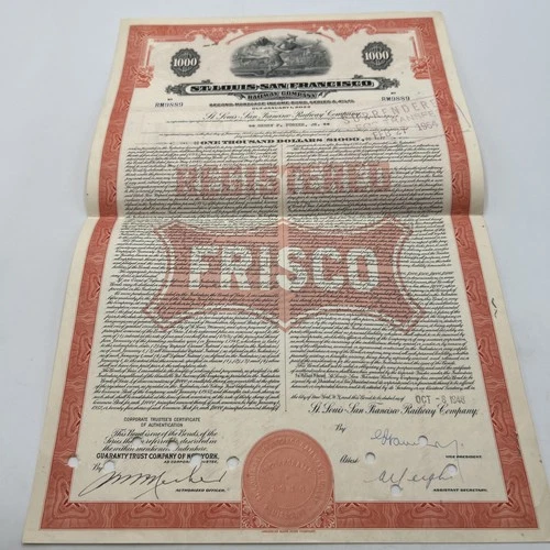 1948 St Louis-San Francisco Railway $1000/$100 Mortgage Income Bonds