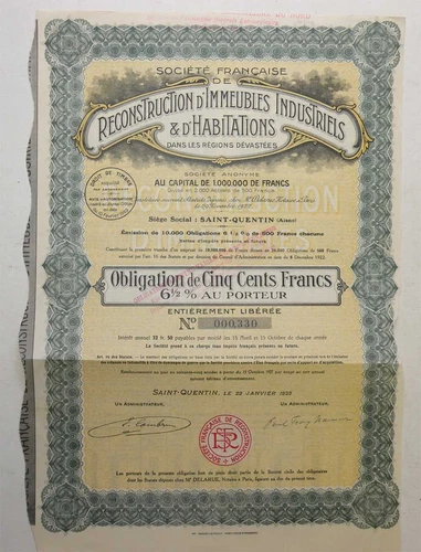 Obligation: Reconstruction of Industrial and Residential Buildings 1922 (465)