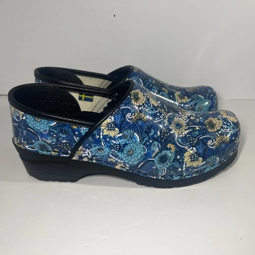 Bjork Swedish Comfort Professional Leather Clogs EU 39 US W-8.5-9 Blue Floral
