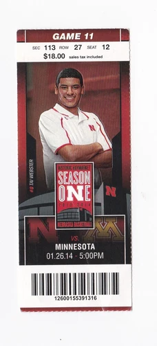 Neb. Cornhusker Husker Basketball 01-26-14 Minnesota Ticket Stubs Tai Webster
