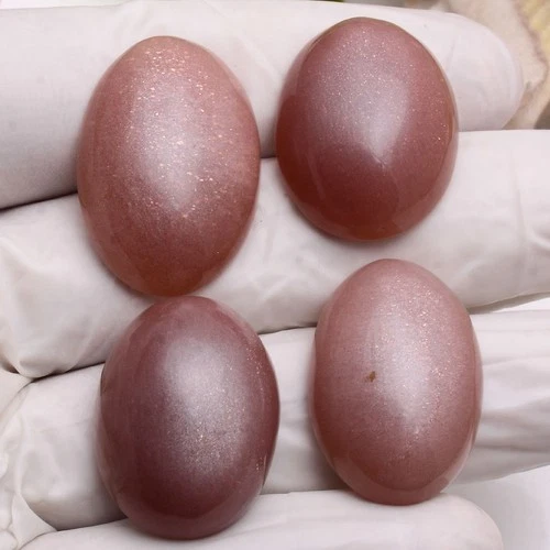 Set Of 4 Pcs Natural Peach Moonstone 26mm-30mm Oval Cabochon Untreated Gemstones