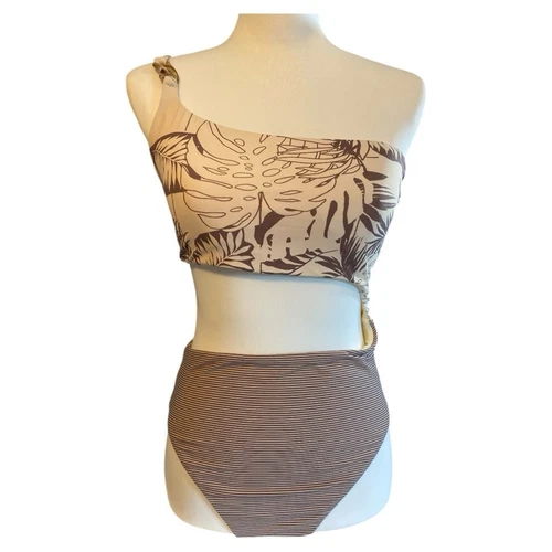 WET Swim Arya One Shoulder Swimsuit Size L Neutral Tropical Cutout Design NWT
