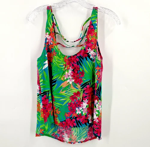Wet Seal Top Women L Colorful Tank Tropical Lace Strappy High Low Travel VTG