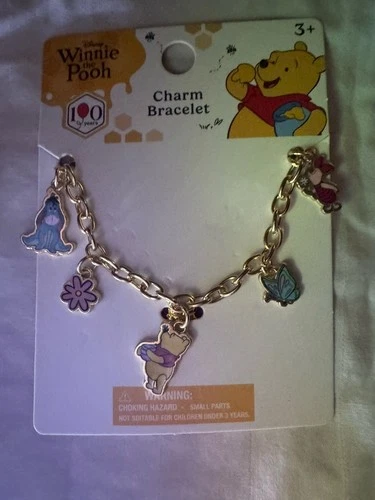 Disney Winnie the Pooh Eeyore Piglet Charm Bracelet Gold Multicolor Enamel