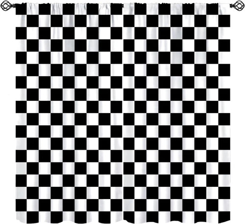 Black and Whit Curtains Racing Flag Car Sports Theme Window Treatment for Kids B
