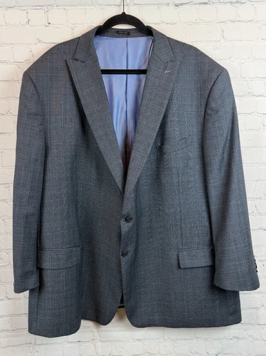 JOSEPH ABBOUD JOE gray blue check !00% wool mens suit jacket blazer 54R