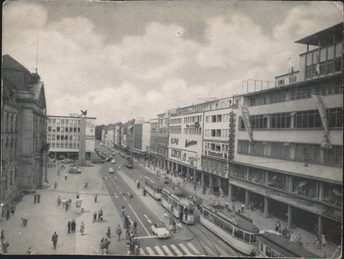 Karlsruhe, Alemania Hauptpost Street Scene con tranvías postal original vintage