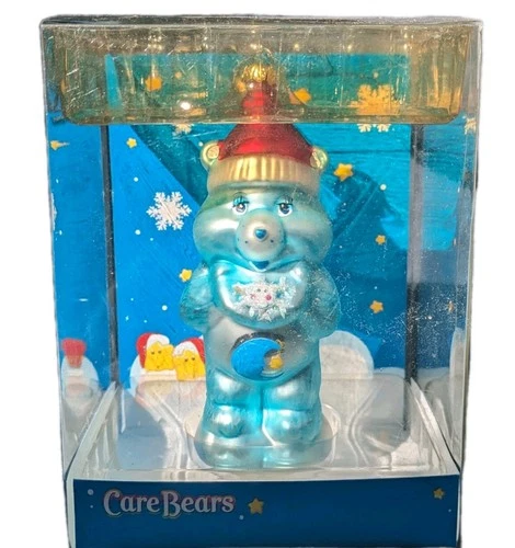 Nuevo vidrio soplado azul cuidado oso Navidad adorno cama hora oso 2005 sellado