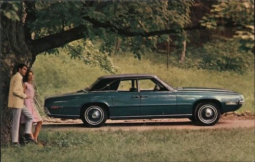 Coches Ford Thunderbird 1968, cuatro puertas Landau cromo original postal vintage