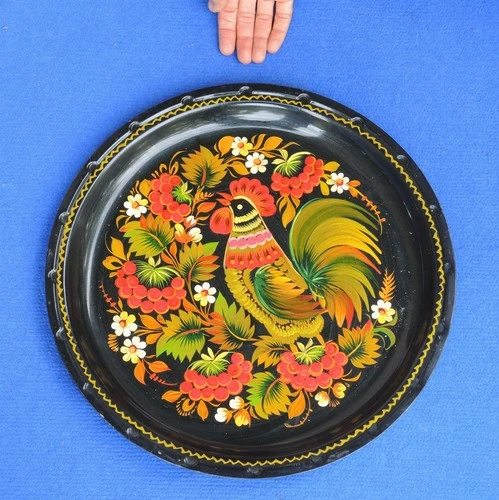 Old Big Ucraniana Pintado a Mano Rooster Petrykivka Metal Plato 15" =3 8cm