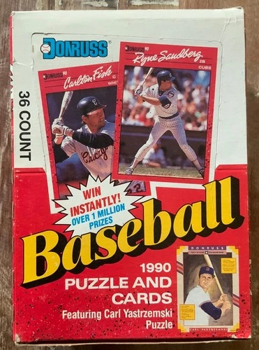 Tarjetas de béisbol y rompecabezas Donruss MLB 1990 - caja de cera 36 paquetes nuevos sin abrir