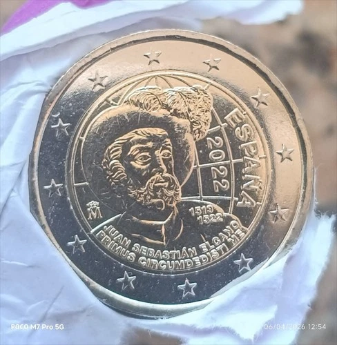 España, 2 Euros. Conmemorativa Juan Sebastián el Cano año 2022 S.C. de cartucho