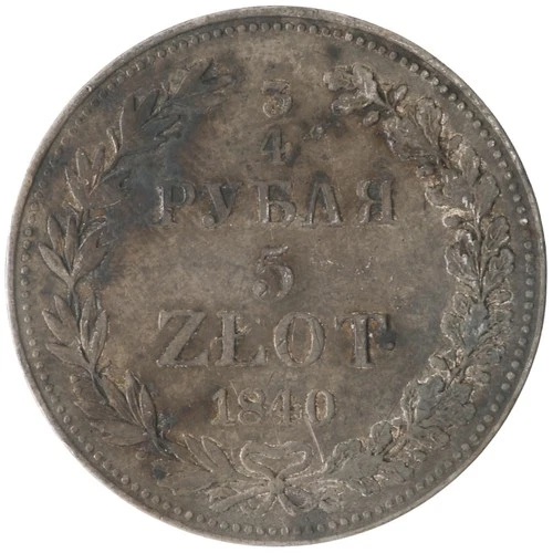 3/4 Rublos (5 Zlotych) 1840 (MW), Polonia (Imperio Ruso) (F), KM C# 133