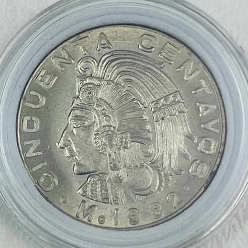 Moneda de 50 centavos de cobre níquel circulada de México 1982 KM 451
