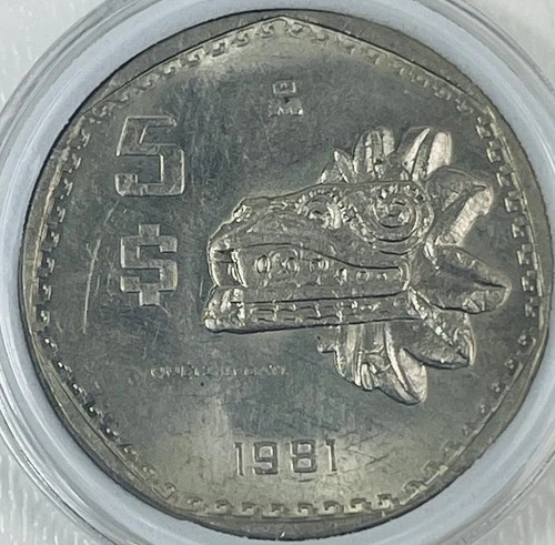 Moneda de 5 Pesos México 1981 Estados Unidos Mexicanos Quetzalcóatl Dios Serpiente