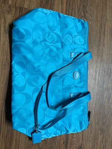 Bolso de Mano Coach Azul Real Signature Weekender Embalable Nylon
