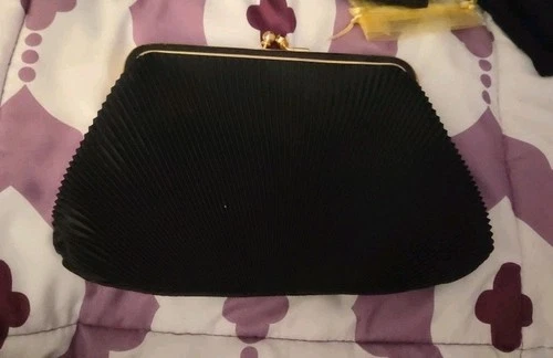Bolso sin asas vintage Carolyne Barton negro de noche con cadena dorada B74