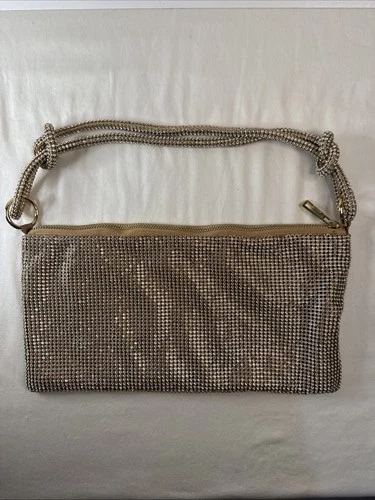 "Bolso de noche dorado con estrás asa anudada cartera con cremallera 12x6"" nuevo sin etiquetas"