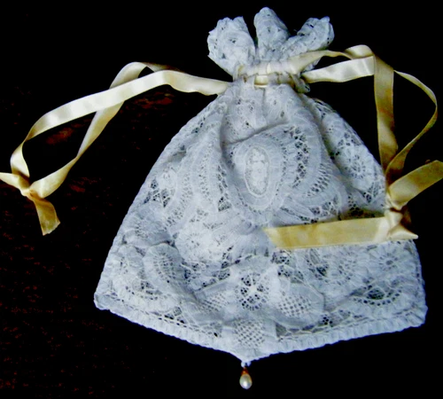 Antigua bolsa de dinero con cordón de boda Bruselas duquesa mezcla bobina encaje extremo 19c