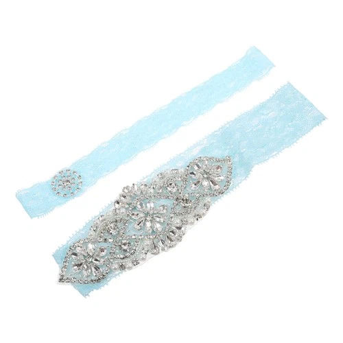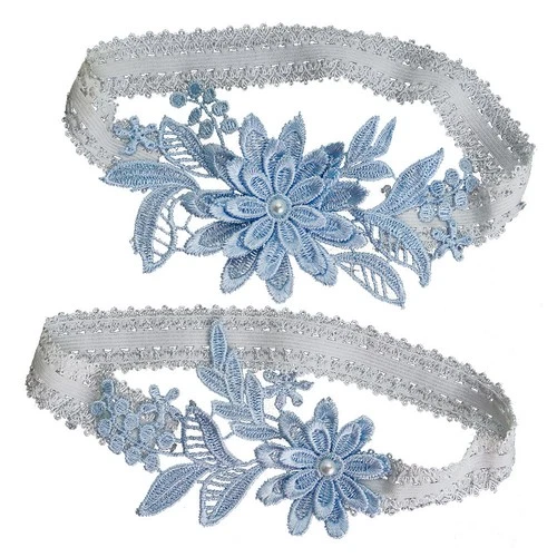 1 Pair Sky Blue Bridal Lace Creative Flower with Pearl Pattern Ring Floral Leg