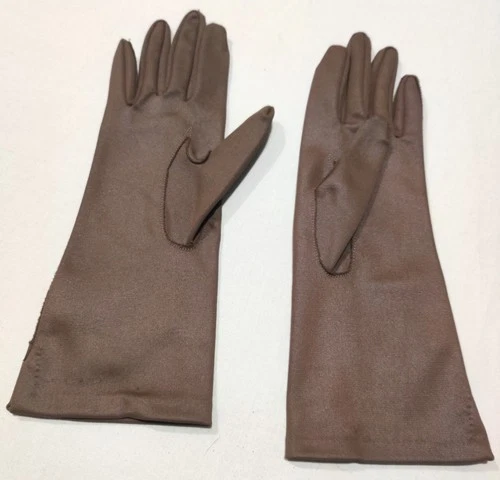 Mujer Vintage Longitud Media Talla 5 Guantes Nylon Noche Elegante Vestido Marrón Oscuro