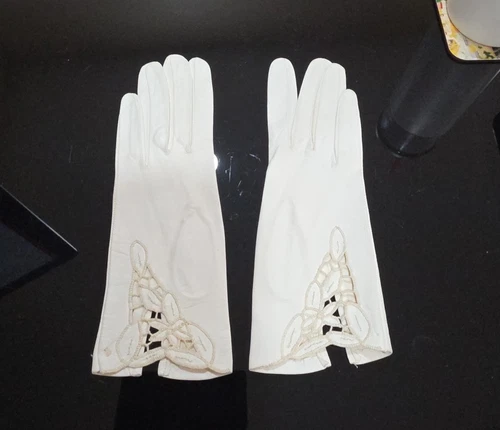 Guantes de cuero blanco roto de colección con detalle de encaje talla 6