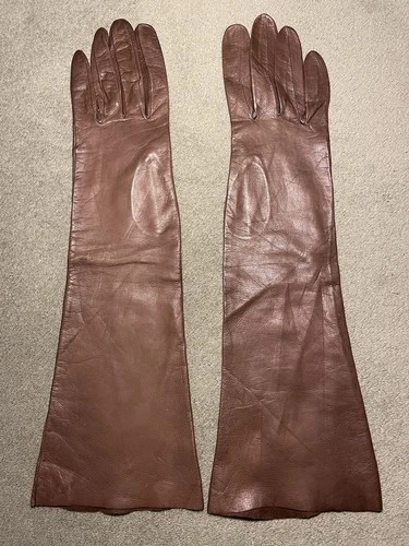 Mujer Vintage Largo Medio Talla 6.5 Nylon Guante Noche Elegante Vestido Marrón Oscuro