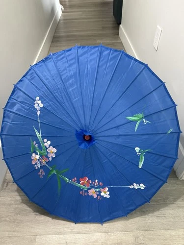 Paraguas/sombrilla japonesa de tela pintada a mano, mango de bambú, 22" de largo, 33" de ancho