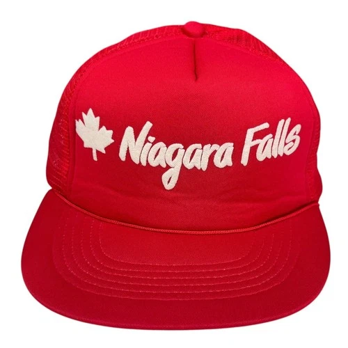 Sombrero de Camionero Niagra Falls Años 90 De Colección Malla Snapback 5 Paneles Ajustable Rojo Canadá