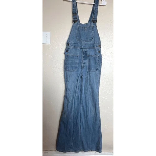 Mono vaquero vintage Hang Ten pierna acampanada lavado claro pierna ancha años 70 azul boho 26