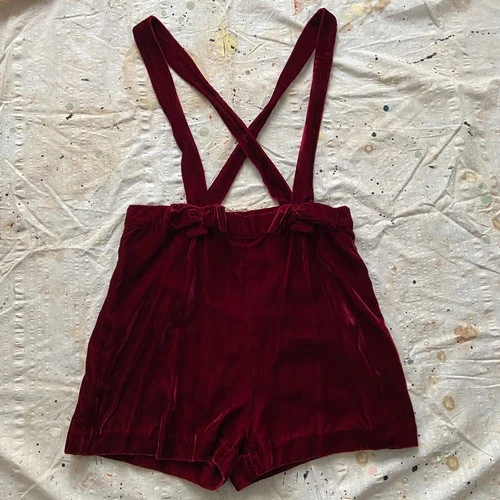 Mono mameluco de terciopelo rojo vintage de los años 60 pantalones cortos lazo pequeño mediano