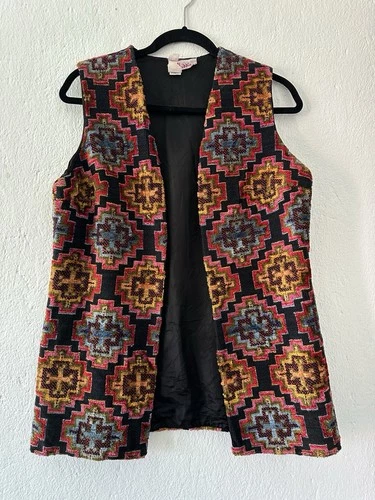 Chaleco Tapiz Boho Vintage Estampado Étnico Frente Abierto Hippie Festival Capas Lg