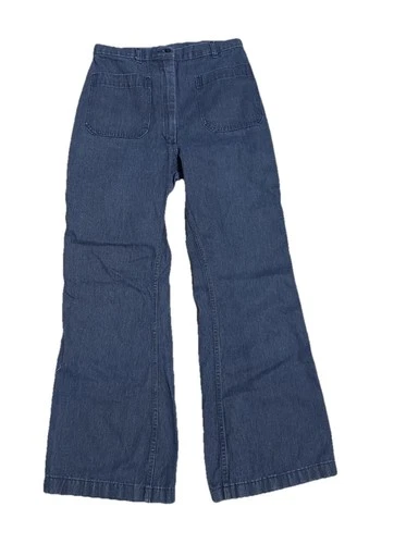 De colección Años 80 USN Marinero Sombrero Utilitario Pantalones Denim 28x31 Campana Fondo Acampanado Hecho en EE. UU.