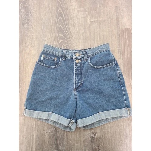 Pantalones Cortos Arizona Jeans 9 Tiro Alto Años 90 Mamá Denim Pesado Azul Puños Botón Mosca De Colección