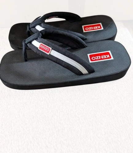 Sandalias KENZO Paris Setta para hombre talla 9,5 negras chanclas logotipo de diseñador en muy buena condición