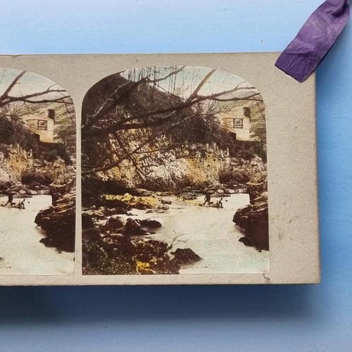 Foto real Poolaphuca Stereoview C1855 vista de Irlanda en Liffey - tintado temprano