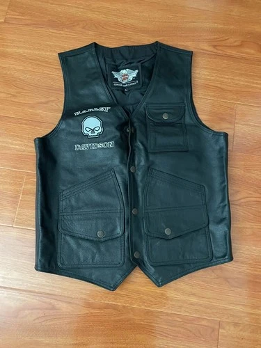Chaleco de cuero de vaca 100 % genuino para motociclista H.Davidson Passing Link para hombre