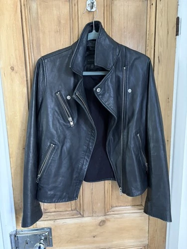 CHAQUETA ESTILO MOTOCICLISTA THE WHITE COMPANY 100% MANTEQUILLA CUERO REAL SUAVE REINO UNIDO 14