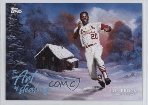 2025 Topps X Bob Ross La alegría del arte del béisbol robando Lou Brock #AOS-3 HOF 16e6