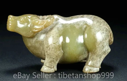 Estatua de bueyes toro año zodiacal tallada en jade hetiano natural de 4,1" China