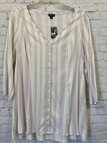 Camisa Top Torrid Mujer Talla Grande 1X Botón Frontal Lavanda Rayas Mangas 3/4 Nueva con Etiquetas