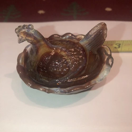 BOYD, RARO Mini gallina en nido pollito sal 2do 5 años escoria vidrio marrón/blanco/azul