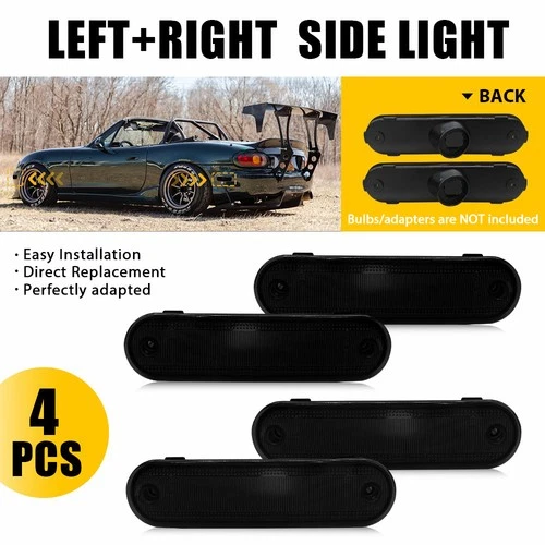 Rear Front Side Marker Lights For 1990-2005 Mazda Miata MX-5 Smoked LH RH 4x B
