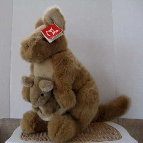 Peluche FAO Schwarz 5th Avenue mamá canguro y bebé Joey de colección grande 18" juguete de peluche