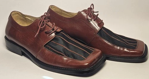 Oxford con cordones Umberto Pellegrini para hombre 11 malla de cuero marrón punta cuadrada Y2K
