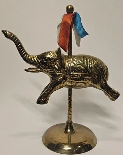 Estatuilla de elefante carrusel de latón macizo en tronco de pie India de colección