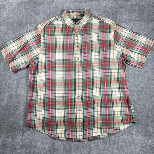 Camisa Lands End vintage de los 90 para hombre XL roja a cuadros manga corta abotonada papá