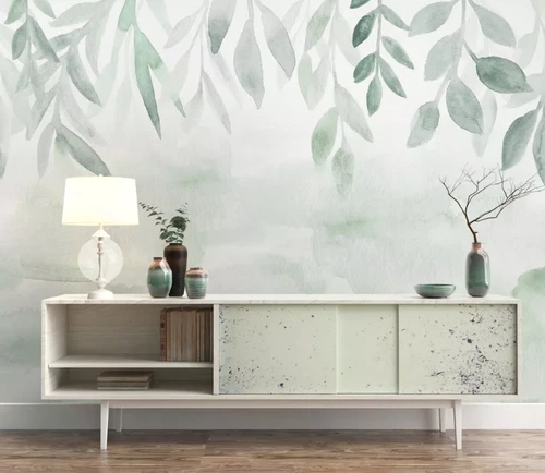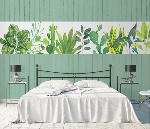 Papel Pintado 3D Hojas Verdes Cactus B5078 Extraíble Autoadhesivo Amy